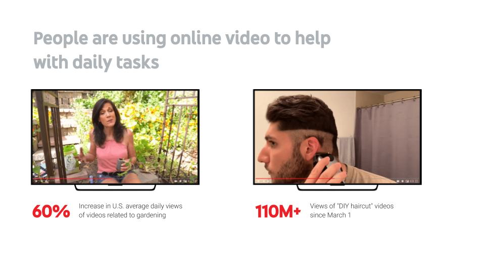 Whether motivated by a desire to participate in a relaxing hobby or to create their own food, viewers turned to gardening channels on YouTube as a handy resource. U.S. average daily views of videos related to gardening have increased by over 60% since March 15, compared to the average daily views of these videos for the year up until then. Even those in built-up areas or short on space participated: videos about container gardens as a viable option for growing plants and food garnered over 14M views.