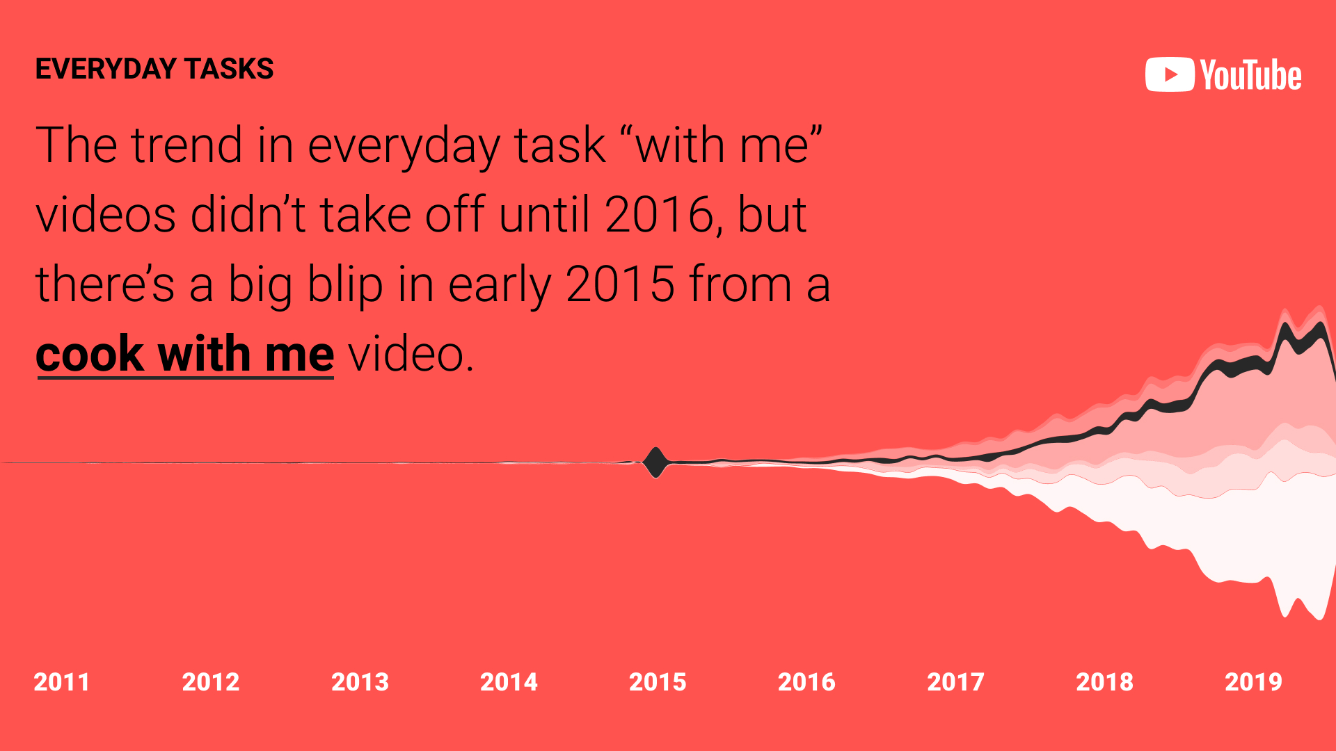 We then calculated the monthly views for each category of “with me” videos, since 2007 to present day.